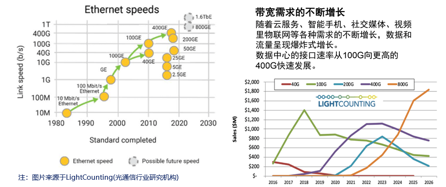 另一方面,400G技术将与下一代光通信技术如800G、1.6T等协同融合,形成平滑演进的技术路线。在未来的网络建设中,将出现400G与更高速率技术共存的局面,通过合理规划网络架构与技术应用策略,实现不同速率技术的优势互补,确保网络在满足当前数据流量需求的同时,能够平滑过渡到更高速率的传输时代,保护运营商与企业的网络建设投资。