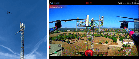 在测量现场期间,飞行中的无人机会瞄准一个基站扇区的天线。乡郊地区的天线通常有几十米高,地面操作员随时监控无人机的位置。正如照片所示,无人机悬停在距离天线仅几米的地方,方向与天线垂直。