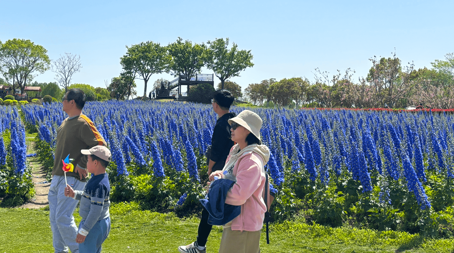 烧烤之余,我们还漫步在绚丽的花海中,感受春天的气息。蓝天白云下,蓝色的花海如梦如幻,仿佛将所有的烦恼都抛在了脑后。孩子们的欢笑声、同事间的互动声,交织成一幅充满生机的画面。