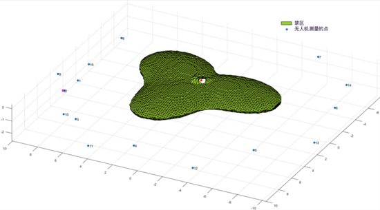 为了配合协议测试活动,工作人员还开发了一种称为EMF Tool的仿真软件工具。它模拟一个移动电话站点,并计算用户在任何周围位置接收到的功率密度等参数。该软件还确定了超出国际暴露限值从而对公众构成潜在风险的禁区。下图显示了仿真软件生成的禁区,以及使用无人机上测试仪的测量点。